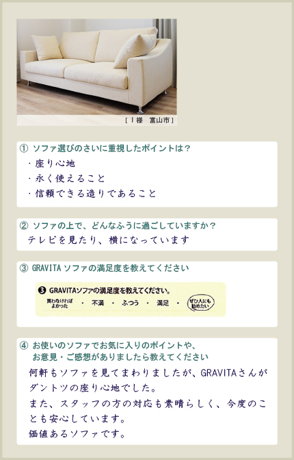 重視したポイントは「座り心地、メンテナンスの簡単さ、耐久性」